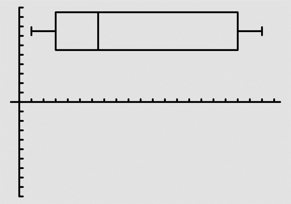 Q1: between 15 and 20, Q3: between 35 and 40, IQR: about 20.