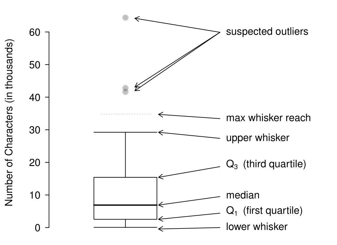 The standard deviation of the number of characters in an email is about 13.13 thousand. A subscript of \(_x\) may be added to the variance and standard deviation, i.e. \(s_x^2\) and \(s_x^{}\text{,}\) as a reminder that these are the variance and standard deviation of the observations represented by \(x_1^{}\text{,}\)\(x_2^{}\text{,}\) ..., \(x_n^{}\text{.}\) The \(_{x}\) subscript is usually omitted when it is clear which data the variance or standard deviation is referencing.