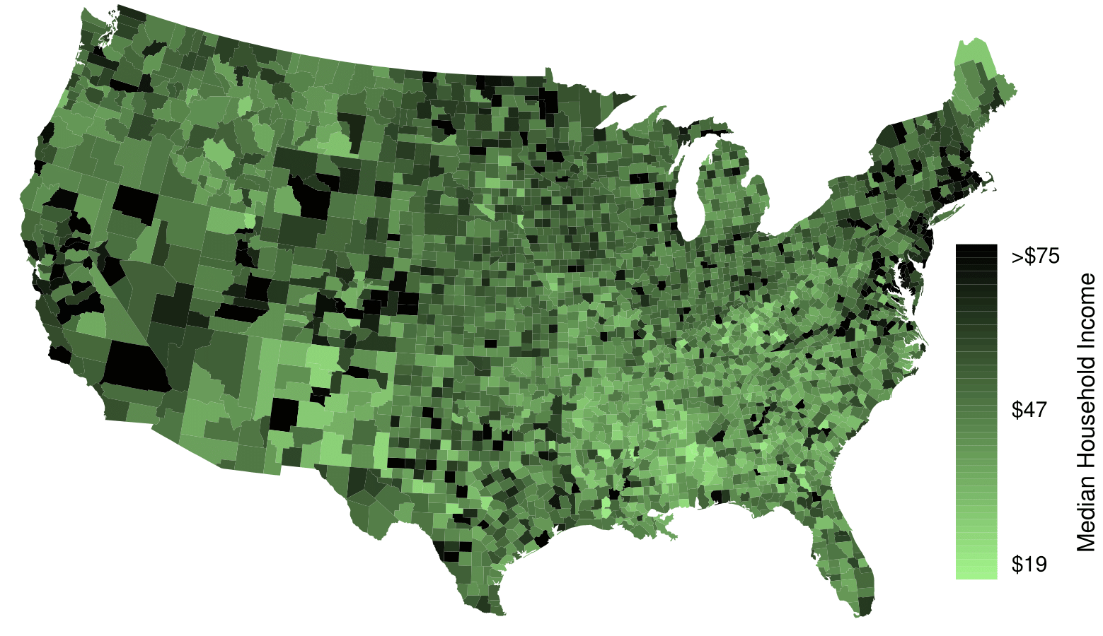 The U.S. Census Bureau reported that in 2017, the median family income was $73,891 and the mean family income was $99,114. 5